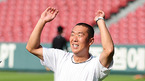 '2009 CJ 마구마구 프로야구' LG 트윈스와 롯데 자이언츠의 경기가 14일 서울 잠실 구장에서 벌어졌다. 경기 전 롯데 정수근이 덕아웃에서 환하게 미소짓고 있다./잠실=민경훈 기자 rumi@osen.co.kr