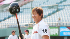 '2009 CJ 마구마구 프로야구' LG 트윈스와 롯데 자이언츠의 경기가 14일 서울 잠실 구장에서 벌어졌다. 경기 전 롯데 이대호가 배트에 헬멧을 걸고 환하게 웃고 있다./잠실=민경훈 기자 rumi@osen.co.kr