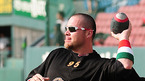 '2009 CJ 마구마구 프로야구' LG 트윈스와 롯데 자이언츠의 경기가 14일 서울 잠실 구장에서 벌어졌다. 경기 전 롯데 가르시아가 미식축구공으로 몸을 풀고 있다./잠실=민경훈 기자 rumi@osen.co.kr