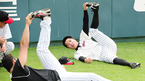 '2009 CJ 마구마구 프로야구' LG 트윈스와 롯데 자이언츠의 경기가 14일 서울 잠실 구장에서 벌어졌다. 경기 전 롯데 정수근이 밝은 표정으로 몸을 풀고 있다./잠실=민경훈 기자 rumi@osen.co.kr