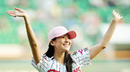 '2009 CJ 마구마구 프로야구' LG 트윈스와 롯데 자이언츠의 경기가 14일 서울 잠실 구장에서 벌어졌다. 경기 전 영화 '소피의 연애매뉴얼'의 홍보차 한국을 방문중인 영화배우 장쯔이가 승리 기원 시구를 한 후 깜찍하게 뛰어오르고 있다./잠실=민경훈 기자 rumi@osen.co.kr