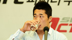 UFC100에 동반 출격해 나란히 승전고를 울린 수퍼액션 UFC 파이터 김동현(27,부산 팀매드)과 추성훈(33,일본명 아키야마 요시히로)의 승리 기념 기자회견이 14일 오전 서울프레스센터 19층 기자회견장에서 열렸다. 김동현이 기자회견중 물을 마시고 있다./민경훈 기자 rumi@osen.co.kr