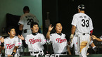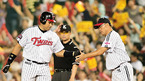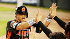 '2009 CJ 마구마구 프로야구' LG 트윈스와 롯데 자이언츠의 경기가 14일 서울 잠실 구장에서 벌어졌다. 6회초 1사 주자 1,3루 롯데 김민성의 좌중간 1타점 적시타로 홈을 밟은 3루 주자 홍성흔이 덕아웃에서 동료들과 기쁨을 나누고 있다./잠실=민경훈 기자 rumi@osen.co.kr