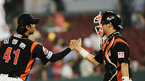 '2009 CJ 마구마구 프로야구' LG 트윈스와 롯데 자이언츠의 경기가 14일 서울 잠실 구장에서 벌어졌다. 이 날 경기에서 롯데는 선발 타자 전원이 안타 및 득점을 신고하는 타격전을 펼치며 중반 이후 벌어진 매서운 추격의 손길을 뿌리치고 LG에게 14-11로 신승했다. 경기를 마치고 롯데 이정훈과 장성우가 하이파이브를 하고...