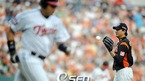 '2009 CJ 마구마구 프로야구' LG 트윈스와 롯데 자이언츠의 경기가 15일 오후 잠실구장에서 벌어졌다. 5회말 6실점을 한 손민한이 1루를 바라보고 있다./잠실=윤민호 기자ymh@osen.co.kr 온라인으로...