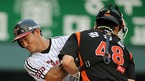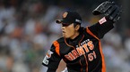 '2009 CJ 마구마구 프로야구' LG 트윈스와 롯데 자이언츠의 경기가 15일 오후 잠실구장에서 벌어졌다. 5회말 1사 만루 상황에서 롯데 손민한이 LG 페타지니를 밀어내기 볼넷으로 진루시키고 있다./잠실=윤민호 기자ymh@osen.co.kr