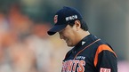 '2009 CJ 마구마구 프로야구' LG 트윈스와 롯데 자이언츠의 경기가 15일 오후 잠실구장에서 벌어졌다. 5회말 6실점을 한 롯데 손민한이 쓴 웃음 짓고 있다./잠실=윤민호 기자ymh@osen.co.kr