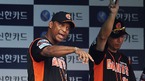'2009 CJ 마구마구 프로야구' LG 트윈스와 롯데 자이언츠의 경기가 15일 오후 잠실구장에서 벌어졌다. 5회초 1사 1,2루 롯데 박종윤의 1타점 적시타 때 홈을 밟은 홍성흔이 장성우의 축하를 받고 있다./잠실=윤민호 기자ymh@osen.co.kr