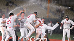 2009 프로야구 히어로즈와 두산 베어스의 경기가 16일 목동야구장에서 벌어졌다. 경기는 역전과 역전을 거듭한 끝에 11회말 무사 만루서 나온 정수성의 끝내기 안타로 히어로즈가 7-6으로 극적인 역전승을 거두었다. 정수성이 끝내기 안타를 치자 황재균이 물호스를 끌고 나와 동료들에게 물을 뿌리고 있다./목동=손용호 기자spjj@osen.co.kr...