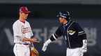 2009 프로야구 히어로즈와 두산 베어스의 경기가 16일 목동야구장에서 벌어졌다. 9회초 2사 만루 이종욱이 역전 2타점 2루타를 치고 2루에서 히어로즈 김일경이 내민 손이 자신을 축하하는 줄 알고 하이파이브를 하고 있다./목동=손용호 기자spjj@osen.co.kr