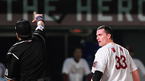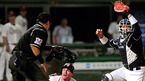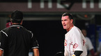 2009 프로야구 히어로즈와 두산 베어스의 경기가 16일 목동야구장에서 벌어졌다. 9회말 무사 1루 강정호의 안타때 홈에서 아웃이 선언된 1루 주자 클락이 격렬하게 항의하자 윤상원 구심이 퇴장을 선언하자 클락이 구심을 노려보고 있다./목동=손용호 기자spjj@osen.co.kr
