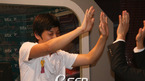 2009 ISU 세계선수권대회 여자피겨 챔피언인 김연아(19·고려대)가 '삼성 애니콜 하우젠 아이스올스타즈 2009' 공연을 성황리에 마치고 17일 오후 전지훈련지인 캐나다로 출국하며 서울 장충동 신라호텔 영빈관 에메랄드홀에서 출국 기자회견을 가졌다. 김연아가 기자회견을 마친후 박수를 치며 자리를 떠나고 있다./민경훈 기자...