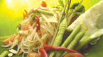 솜땀(Spicy papaya salad)은 매운 파파야샐러드를 의미한다. 태국의 대표적인 음식으로 레스토랑에 따라 솜땀을 ‘Somtam’ 그대로 표기하는 경우도 있다. 태국 북동부 지역에서 전해진 이 매운 파파야샐러드는 현재 태국 전역에서 즐겨먹는 대중적인 음식이다. 길고 얇게 자른 생 파파야와 라임주스, 생선소스, 칠리, 땅콩, 허니...