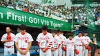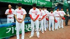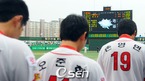 '2009 CJ 마구마구 프로야구' KIA 타이거즈와 히어로즈의 경기가 18일 오후 광주 무등경기장에서 벌어졌다. 경기 전 선수들이 제15대 김대중(金大中.85) 전 대통령의 서거에 묵념을 하고 있다./광주=윤민호 기자ymh@osen.co.kr