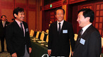 2022 FIFA 월드컵유치위원회 창립총회가 19일 정계 문화예술계 스포츠단체 등 각계인사 50여명이 참석한 가운데 조선호텔에서 열렸다. 임시의장에는 이홍구 전 2002 월드컵조직위원장이 선출됐다. 정몽준 FIFA 부회장이 영화배우 안성기 국회의원 원희룡과 얘기를 나누고 있다./손용호 기자spjj@osen.co.kr
