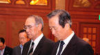2022 FIFA 월드컵유치위원회 창립총회가 19일 정계 문화예술계 스포츠단체 등 각계인사 50여명이 참석한 가운데 조선호텔에서 열렸다. 임시의장에는 이홍구 전 2002 월드컵조직위원장이 선출됐다. 정몽준 FIFA 부회장 이홍구 임시의장이 故 김대중 전 대통령을 추모하는 묵념을 올리고 있다./손용호 기자spjj@osen.co.kr