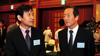 2022 FIFA 월드컵유치위원회 창립총회가 19일 정계 문화예술계 스포츠단체 등 각계인사 50여명이 참석한 가운데 조선호텔에서 열렸다. 임시의장에는 이홍구 전 2002 월드컵조직위원장이 선출됐다. 정몽준 FIFA 부회장이 영화배우 안성기와 밝은 표정으로 이야기를 나누고 있다../손용호 기자spjj@osen.co.kr