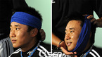 '2009 CJ 마구마구 프로야구' 두산 베어스와 LG 트윈스 경기가 20일 잠실 경기장에서 열렸다. LG 김태군 포수가 공수교대후 덕아웃에서 트레이너로 부터 시원한 냉얼음 찜질팩을 받으며 즐거워하고 있다./잠실=김영민 기자ajyoung@osen.co.kr