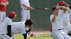 '2009 CJ 마구마구 프로야구' SK 와이번스와 KIA 타이거즈의 3위와 1위 간의 경기가 21일 오후 인천 문학경기장에서 벌어진다. 경기 전 타격 연습을 하던 SK 박재상이 환한 미소 짓고 있다./인천=윤민호 기자ymh@osen.co.kr