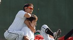 '2009 CJ 마구마구 프로야구' SK 와이번스와 KIA 타이거즈의 3위와 1위 간의 경기가 21일 오후 인천 문학경기장에서 벌어진다. 경기 전 몸을 풀던 KIA 윤석민이 모자를 이용해 잠자리를 잡고 있다./인천=윤민호 기자ymh@osen.co.kr