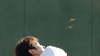 '2009 CJ 마구마구 프로야구' SK 와이번스와 KIA 타이거즈의 3위와 1위 간의 경기가 21일 오후 인천 문학경기장에서 벌어진다. 경기 전 몸을 풀던 KIA 박기남이 잠자리를 잡고 있다./인천=윤민호 기자ymh@osen.co.kr