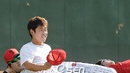 '2009 CJ 마구마구 프로야구' SK 와이번스와 KIA 타이거즈의 3위와 1위 간의 경기가 21일 오후 인천 문학경기장에서 벌어진다. 경기 전 몸을 풀던 KIA 윤석민이 목근육 마사지를 받고 있다./인천=윤민호 기자ymh@osen.co.kr