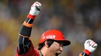 '2009 CJ 마구마구 프로야구' SK 와이번스와 KIA 타이거즈의 3위와 1위 간의 경기가 21일 오후 인천 문학경기장에서 벌어졌다. 4-4으로 맞서던 8회초 KIA 공격, 2사 만루 상황에서 만루홈런을 날린 나지완이 환호하고 있다./인천=윤민호 기자ymh@osen.co.kr