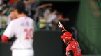 '2009 CJ 마구마구 프로야구' SK 와이번스와 KIA 타이거즈의 3위와 1위 간의 경기가 21일 오후 인천 문학경기장에서 벌어졌다. 4-3으로 뒤지던 6회말 SK 공격, 1사 주자없는 상황에서 솔로 홈런을 날린 정상호가 기뻐하고 있다./인천=윤민호 기자ymh@osen.co.kr