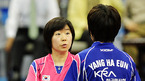 2009 대한항공배 코리아 오픈 탁구대회 본선 경기가 22일 서울 올림픽 제1체육관에서 열렸다. 21세 이하 여자 단식 결승서 한국의 양하은(15)이 일본의 모리조노 미사키(17)와 경기 중 자신의 어머니인 김인순 코치와 얘기를 나누고 있다. /올림픽제1체=민경훈 기자 rumi@osen.co.kr