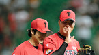 '2009 CJ 마구마구 프로야구' SK 와이버슨와 KIA 타이거즈 경기가 22일 인천 문학경기장에서 열려 KIA 타이거즈가 선발 로페즈의 호투와 대타 이재주의 스리런 홈런을 앞세워 장단 18안타를 터트리며 11-4 대승을 거두었다. 경기 종료후 김상현,이현곤이 이야기를 나누며 그라운드를 빠져나가고 있다./인천=김영민...