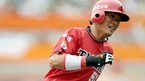 '2009 CJ 마구마구 프로야구' SK 와이버슨와 KIA 타이거즈 경기가 22일 인천 문학경기장에서 열렸다. 4회초 1사 1,2루 이재주 좌월스리런 홈런을 날리고 타구를 바라보고 있다./인천=김영민 기자ajyoung@osen.co.kr