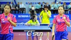 2009 대한항공배 코리아 오픈 탁구대회 최종일 경기가 23일 서울 올림픽 제1체육관에서 열렸다. 여자 복식 결승전서 한국의 김경아-박미영 조가 홍콩 장화쥔-톄야나 조와 경기를 벌이고 있다./올림픽제1체=윤민호 기자ymh@osen.co.kr