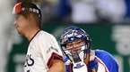 '2009 CJ 마구마구 프로야구' 두산 베어스와 삼성 라이온즈의 경기가 23일 오후 잠실야구장에서 벌어졌다. 두산은 1회 선제 솔로아치 포함 3타점을 기록한 김현수와 7회 터진 민병헌의 결승 적시타를 앞세워 5-4로 승리했다. 최승환과 이용찬이 마운드에 모여 승리를 자축하고 있다./잠실=윤민호...