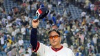 '2009 CJ 마구마구 프로야구' 두산 베어스와 삼성 라이온즈의 경기가 23일 오후 잠실야구장에서 벌어졌다. 두산은 1회 선제 솔로아치 포함 3타점을 기록한 김현수와 7회 터진 민병헌의 결승 적시타를 앞세워 5-4로 승리했다. 김경문 감독이 팬들에게 인사를 하고 있다./잠실=윤민호 기자ymh@osen.co.kr
