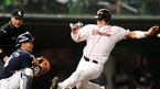 '2009 CJ 마구마구 프로야구' SK 와이번스와 두산 베어스의 경기가 25일 인천 문학 구장에서 벌어졌다. 9회말 2사 주자 1,2루 SK 이호준이 삼진아웃 당하자 황당하다는 표정을 짓고 있다./문학=민경훈 기자 rumi@osen.co.kr