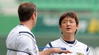 '2009 CJ 마구마구 프로야구' SK 와이번스와 두산 베어스의 치열한 2위 다툼 경기가 27일 오후 인천 문학구장에서 벌어졌다. 경기 전 두산 김선우가 니코스키와 대화를 나누고 있다./인천=윤민호 기자ymh@osen.co.kr