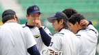 '2009 CJ 마구마구 프로야구' SK 와이번스와 두산 베어스의 치열한 2위 다툼 경기가 27일 오후 인천 문학구장에서 벌어졌다. 경기 전 두산 김현수가 동료선수들과 대화를 나누고 있다./인천=윤민호 기자ymh@osen.co.kr