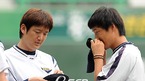 '2009 CJ 마구마구 프로야구' SK 와이번스와 두산 베어스의 치열한 2위 다툼 경기가 27일 오후 인천 문학구장에서 벌어졌다. 경기 전 두산 김선우와 김상현이 모자의 실밥을 뜯고 있다./인천=윤민호 기자ymh@osen.co.kr