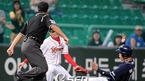 '2009 CJ 마구마구 프로야구' SK 와이번스와 두산 베어스의 치열한 2위 다툼 경기가 27일 오후 인천 문학구장에서 벌어졌다. 1-0으로 앞서던 2회말 SK 공격, 2사 만루 정근우의 2타점 적시타 때 2루자 박재홍이 홈을 밟고 있다./인천=윤민호 기자ymh@osen.co.