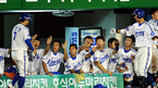 '2009 CJ 마구마구 프로야구' 삼성 라이온즈와 롯데 자이언츠 경기가 27일 대구 경기장에서 열렸다. 2회말 1사 3루 박석민 중견수 희생플라이때 3루 주자 박진만 득점을 올리며 덕아웃 동료들의 환영을 받고 있다./대구=김영민 기자ajyoung@osen.co.kr