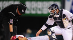 2009 프로야구 정규리그 1,2위 팀인 KIA 타이거즈와 두산 베어스의 경기가 28일 잠실야구장에서 벌어졌다. 9회초 2사 이현곤이 두산 투수 이용찬의 공에 머리를 맞고 괴로워 하고 있다./잠실=손용호 기자spjj@osen.co.kr