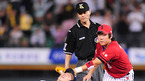 2009 프로야구 정규리그 1,2위 팀인 KIA 타이거즈와 두산 베어스의 경기가 28일 잠실야구장에서 벌어졌다. 7회초 2사 1,2루 안치홍이 자신의 타구에 맞아 괴로워 하고 있다. /잠실=손용호 기자spjj@osen.co.kr