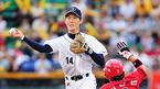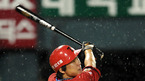 '2009 CJ 마구마구 프로야구' 두산 베어스와 KIA 타이거즈의 경기가 29일 서울 잠실 구장에서 벌어졌다. 3회말 2사 주자 1루 두산 김동주가 홈런상 타구가 중견수 플라이 아웃처리되자 허탈한 표정을 짓고 있다./잠실=민경훈 기자 rumi@osen.co.kr
