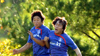 오는 9월 5일 서울 월드컵경기장서 벌어질 호주와 평가전을 앞두고 축구대표팀 해외파 선수들이 1일 정오 파주NFC에 소집 오후 훈련을 가졌다. 이청용,조원희가 미니게임에서 같은 조에 임하게 되자 하이파이브를 하고 있다./파주=김영민 기자ajyoung@osen.co.kr