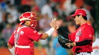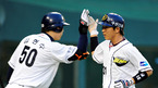 '2009 CJ 마구마구 프로야구' 롯데 자이언츠와 KIA 타이거즈의 올 시즌 마지막 맞대결 경기가 1일 오후 부산 사직구장에서 벌어졌다. KIA는 선발 서재응의 역투와 김상훈의 맹타를 발판삼아 4-3으로 승리했다. KIA 김상훈과 유동훈이 마운드에 모여 승리를 자축하고 있다./부산=윤민호 기자ymh@osen.co.kr...