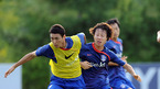 오는 9월 5일 서울 월드컵경기장서 벌어질 호주와 평가전을 앞두고 축구대표팀 해외파,국내파 선수들이 모인가운데 3일 오후 파주NFC에 소집 되어 첫 훈련을 가졌다. 이정수,이승현이 청,백팀으로 나뉘어 경기를 펼치고 있다./파주=김영민 기자ajyoung@osen.co.kr