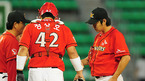 '2009 CJ 마구마구 프로야구' 두산 베어스와 SK 와이번스의 경기가 3일 서울 잠실구장에서 벌어졌다. 1회말 1사 주자 만루 두산 최준석 타석에서 SK 선발 송은범이 밀어내기로 1점을 주자 가토 코치와 정상호 포수가 투수 마운드 쪽으로 모이고 있다./잠실=민경훈 기자 rumi@osen.co.kr