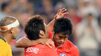 축구 국가대표팀이 5일 저녁 서울 월드컵경기장에서 호주와 친선 경기를 가졌다. 후반 설기현이 팀 세번째 골을 성공시키며 이근호로 부터 축하를 받고 있다./성산=김영민 기자ajyoung@osen.co.kr 온라인으로 받아보는 스포츠...