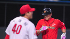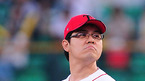 2009 프로야구 1,2위팀인 KIA 타이거즈와 SK 와이번스의 경기가 8일 광주 무등경기장에서 벌어졌다. 개그맨 김용만이 마운드에서 거만한 표정을 짓고 있다./광주=손용호 기자spjj@osen.co.kr 온라인으로 받아보는 스포츠...
