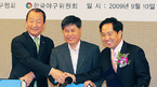 고양 국가대표 야구훈련장 협정식이 10일 오후 한국프레스센터 19층 매화홀에서 열렸다. 이 자리에는 강현석 고양시장, 유영구 한국야구위원회 총재, 강승규 대한야구협회장, 박용성 대한체육회장이 참석했다. 유영구 총재 강현석 시장, 강승규 회장이 사용 협정식을 갖은 후 포토타임을 갖고 있다./민경훈 기자 rumi@osen.co.kr